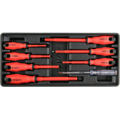 Sada 8 kusů elektrikářských šroubováků z oceli s izolací. Sada je přehledně srovnána ve vložce do zá
