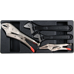 Sada 3 kusů kleští z CrV/CrMo oceli. Sada je přehledně srovnána ve vložce do zásuvky z PVC.Obsah bal