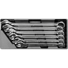 Sada 7 kusů očkových klíčů z CrV oceli. Klíče jsou přehledně srovnány ve vložce do zásuvky z PVC.Obs