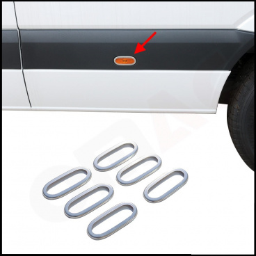 Nerez kryty bočních výstražných světel Omtec MB Sprinter, VW Crafter 2006-18 (6 ks)