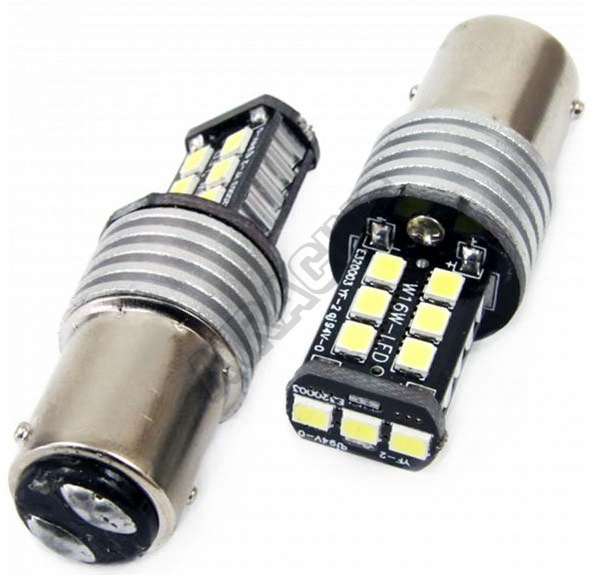 15 SMD LED bílé žárovky jednovláknové Ba15D 21W (P21W) CANBUS - 2 ks Přímá náhrada třeba pro denní
