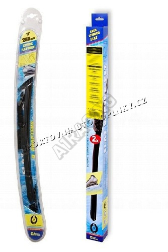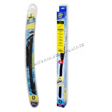 Stěrače FLAT SET (sada 2 ks na celé auto). Vysoce kvalitní pružný člen plochého stěrače zajišťuje stejnoměrný tlak grafitového břitu v celé jeho délce, což zamezuje rozmazávání nečistot a vytváření pruhů.
