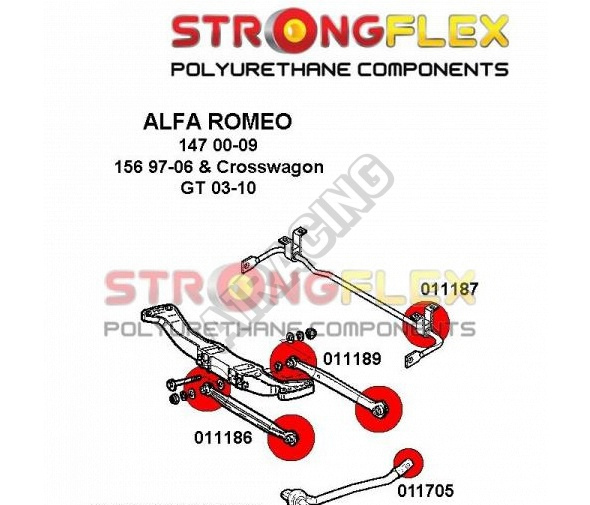 Alfa Romeo 147 StrongFlex sestava silentbloků jen pro zadní nápravu 12 ks obsahuje:
