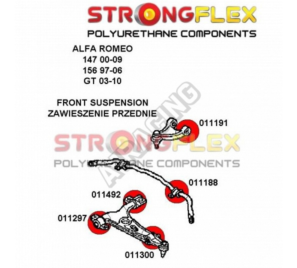Alfa Romeo 156 StrongFlex sestava silentbloků jen pro přední nápravu 12 ks obsahuje:
