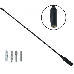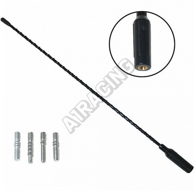 Univerzální náhradní anténní prut určený pro příjem rozhlasového signálu v automobilu. Vhodný pro většinu druhů autoantén. délka: 41cm závit: venkovní/vnitřní/4adaptéry. Perfektně pasuje třeba pro Škodu Felicii a Octavii I.