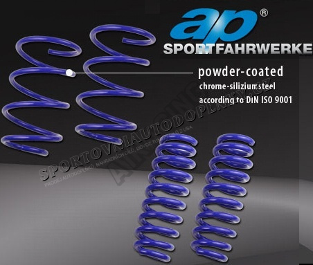 - sportovní snížené pružiny AP SPORTFAHRWERKE spadají pod německý koncern KW AUTOMOTIVE, který mimo jiné vyrábí sportovní podvozkové díly KW a WEITEC, je zde zaručena velmi dobrá kvalita i funkčnost, AP SPORTFAHRWERKE a WEITEC je určen spíše pro sportovní řidiče pro běžné ježdění, kde díky snížení a větší tvrdosti pružin je auto více stabilní, KW produkty díky tvrdšímu nastavení se hodí spíše již na závodní okruh, pokud kupujete jen pružiny, doporučené snížení je max. 35/35 mm, při větším snížení, je již opravdu lepší koupit kompletní pevný podvozek včetně zkrácených tlumičů, běžné tlumiče jíž nepracují ideálně a zkracuje se jejich životnost,