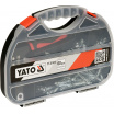 Kleště jsou spolu se spojovacím materiálem uspořádány v plastovém kufru.