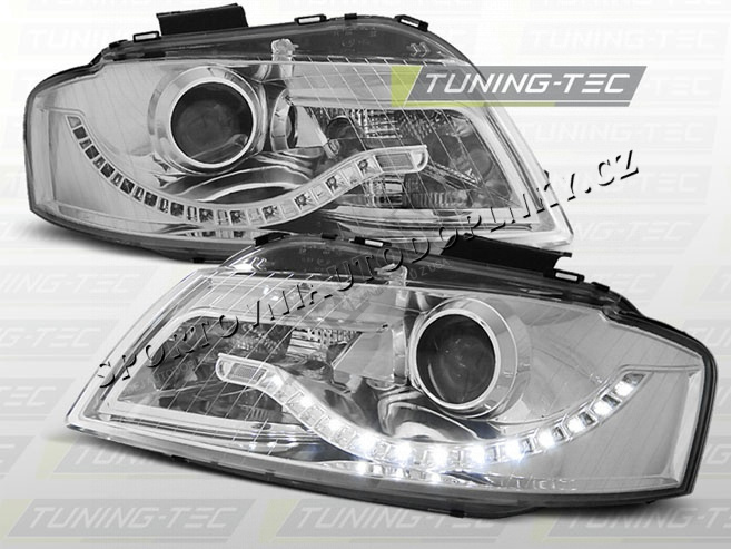 AUDI A3 (8P) 2003-08 PŘEDNÍ ČÍRÁ SVĚTLA DAYLIGHT LED CHROME