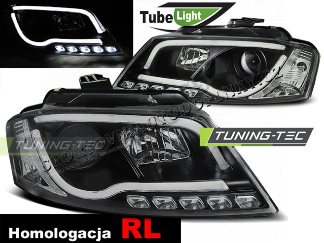 Audi A3 8P 2008-12 přední čirá světla Led Tube Lights DRL black