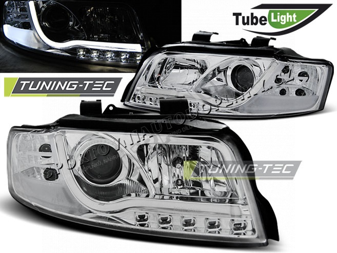 AUDI A4 10.2000-10.2004 PŘEDNÍ ČÍRÁ SVĚTLA LED TUBE LIGHTS CHROME