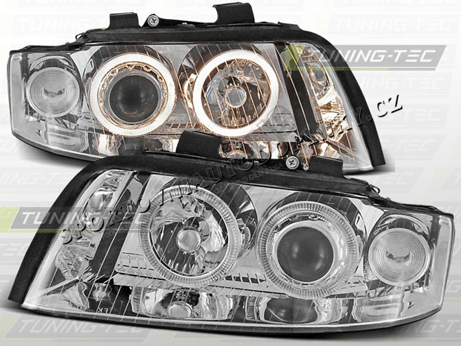 AUDI A4 (B6) 2000-04 PŘEDNÍ ČÍRÁ SVĚTLA ANGEL EYES CHROME