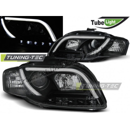 AUDI A4 B7 11.2004-03.2008 PŘEDNÍ ČÍRÁ SVĚTLA LED TUBE LIGHTS BLACK