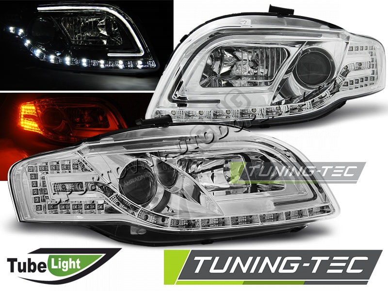 Audi A4 B7 11.2004-03.2008 přední čirá světla Led Tube Lights chrome
