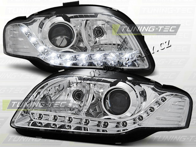 AUDI A4 (B7) 2004-08 PŘEDNÍ ČÍRÁ SVĚTLA DAYLIGHT LED CHROME