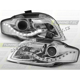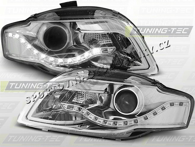 AUDI A4 (B7) 2004-08 PŘEDNÍ ČÍRÁ SVĚTLA DAYLIGHT LED CHROME