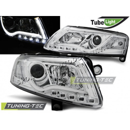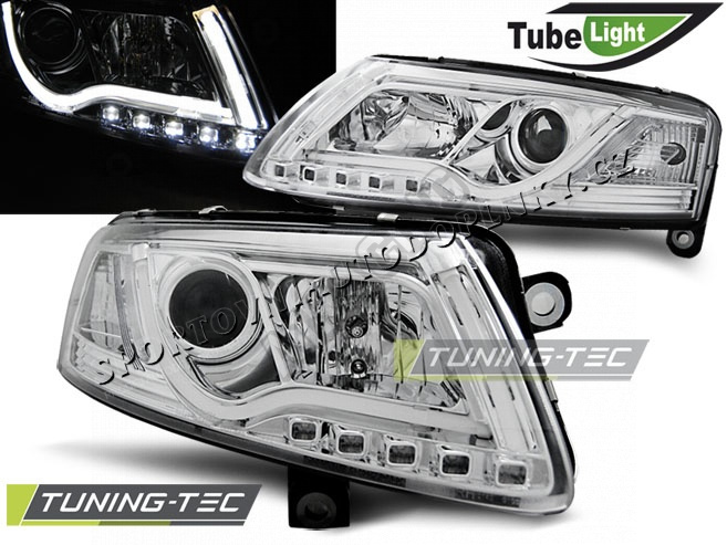 AUDI A6 C6 04.2004-2008 PŘEDNÍ ČÍRÁ SVĚTLA LED TUBE LIGHTS CHROME