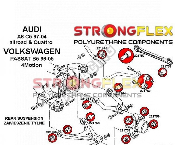 Audi Allroad 1997-03 StrongFlex Sport sestava silentbloků jen pro zadní nápravu 19 ks443.79 EUR
