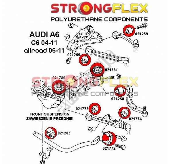 Audi Allroad 2004-11 StrongFlex sestava silentbloků jen pro přední nápravu 16 ks