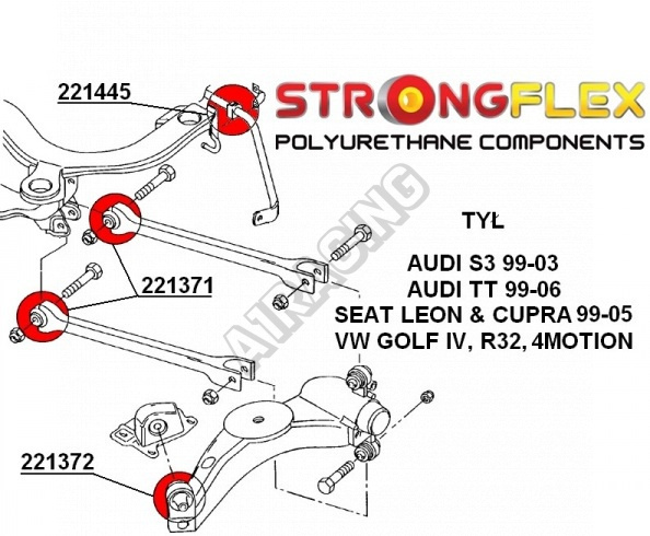 Audi TT 1999-06 StrongFlex kompletní sestava silentbloků 14 ks Tvrdší silentbloky dodá vašemu autu