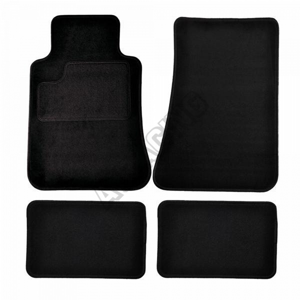 Sada 4ks pro celé vozidlo - univerzální textilní autokoberce - černý lem - protiskluzová úprava spodní strany autokoberců - odolná textilní podložka v prostoru pod pedály