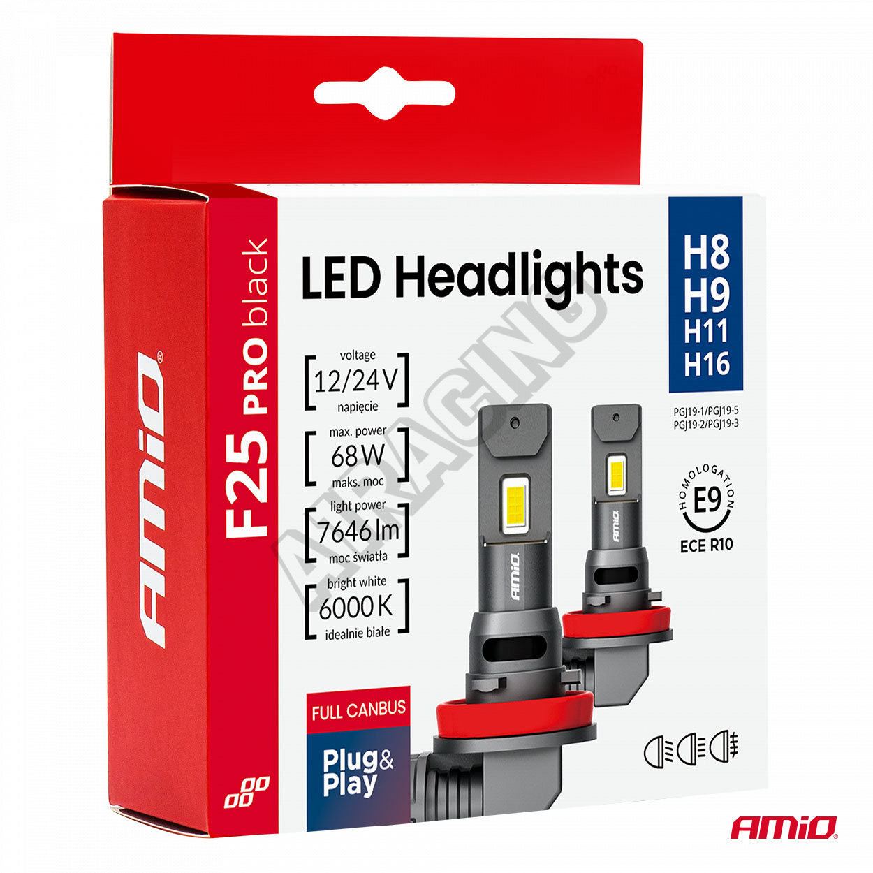 Automobilové LED žárovky série F25 PRO BLACK FULL CANBUS H8 H9 H11 H16 68W 12V 24V