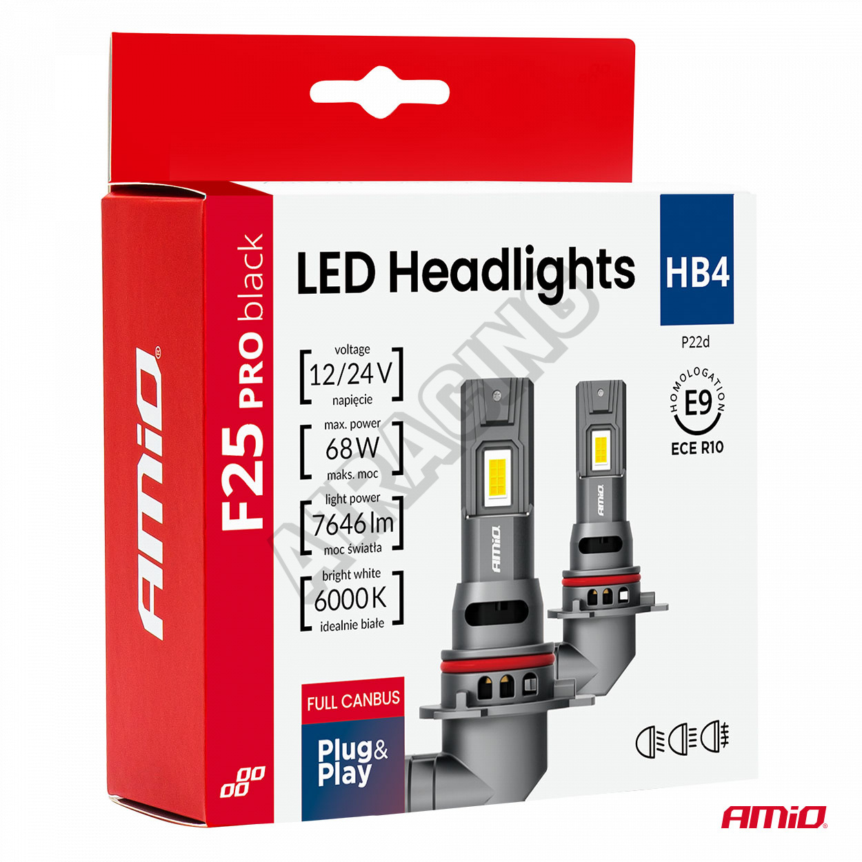 Automobilové LED žárovky série F25 PRO BLACK FULL CANBUS HB4 68W 12V 24V AMIO-04723