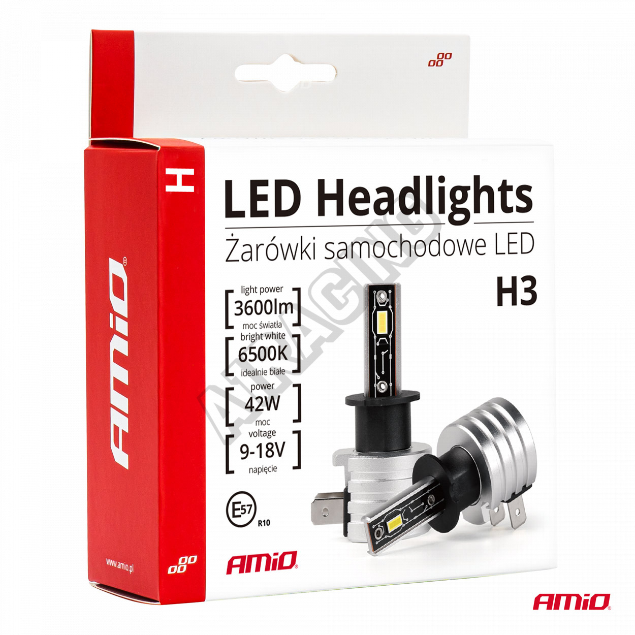 Žárovky LED H3 AMiO série H se vyznačují velmi vysokou kvalitou provedení. Navrhovaný produkt vyzařuje jasnější a koncentrovanější světlo, což umožňuje lepší viditelnost cesty za podmínek omezeného osvětlení, jako je soumrak, mlha nebo déšť. Světelné zdroje vyrobené v technologii CSP jsou efektivnější v procesu přeměny elektrické energie na viditelné světlo ve srovnání s tradičními halogenovými žárovkami. LED žárovky jsou odolnější vůči otřesům a vibracím, což znamená, že mají delší životnost než halogenové žárovky.