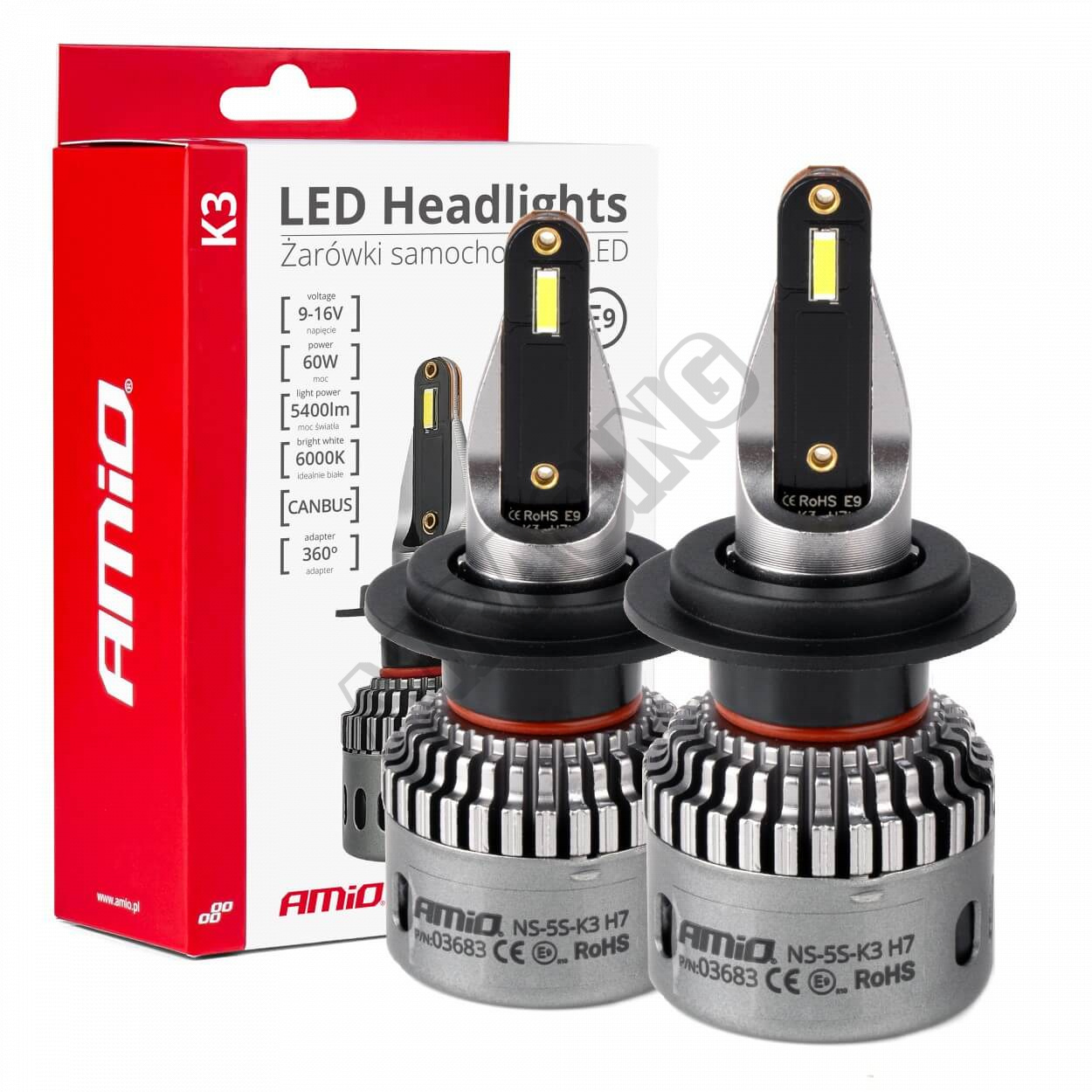 Automobilové LED žárovky série K3 H7 12V 6000K Canbus AMIO-03683