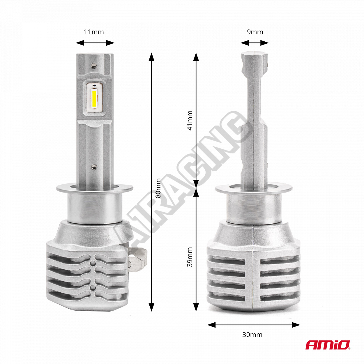 LED žárovky H1 AMiO série X1 se vyznačují velmi vysokou kvalitou provedení. Navrhovaná sada vyzařuje jasnější a koncentrovanější světlo, což umožňuje lepší viditelnost cesty za podmínek omezeného osvětlení, jako je soumrak, mlha nebo déšť. Světelné zdroje vyrobené v technologii CSP jsou efektivnější v procesu přeměny elektrické energie na viditelné světlo ve srovnání s tradičními halogenovými žárovkami. LED žárovky jsou odolnější vůči otřesům a vibracím, což znamená, že mají delší životnost než halogenové žárovky.