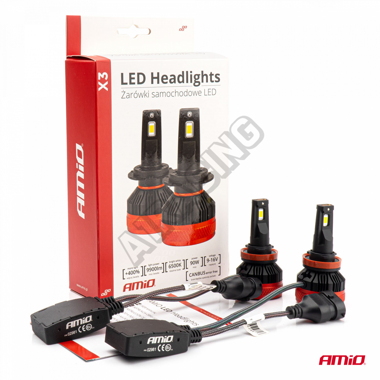 LED žárovky H8 H9 H11 H16 AMiO série X3 se vyznačují velmi vysokou kvalitou provedení. Navrhovaný produkt vyzařuje jasnější a koncentrovanější světlo, což umožňuje lepší viditelnost cesty za podmínek omezeného osvětlení, jako je soumrak, mlha nebo déšť. Světelné zdroje vyrobené v technologii CSP jsou efektivnější v procesu přeměny elektrické energie na viditelné světlo ve srovnání s tradičními halogenovými žárovkami. LED žárovky jsou odolnější vůči otřesům a vibracím, což znamená, že mají delší životnost než halogenové žárovky.