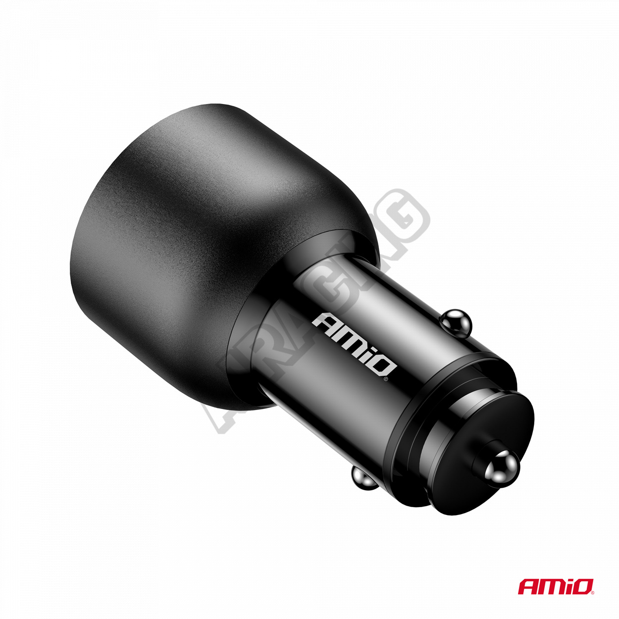 Autonabíječka 2x USB-C + USB-A 12V 24V 95W AMIO-04372