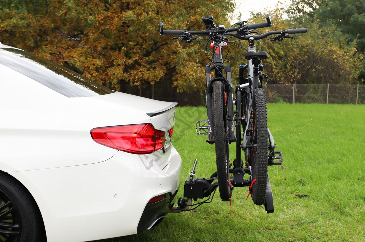 Robustní sklopná platforma montovaná na tažné zařízení pro přepravu jednoho až dvou kol.