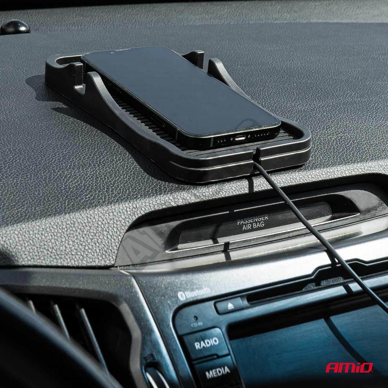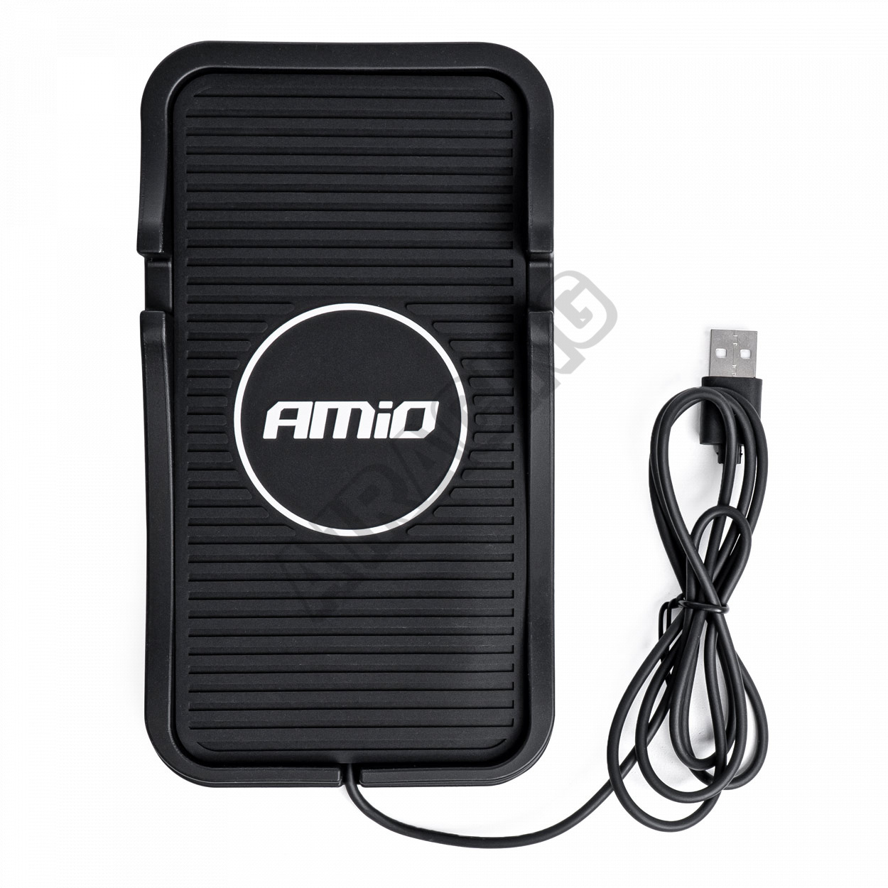 BEZDRÁTOVÁ INDUKČNÍ NABÍJEČKA AMiO 15W 3A QC s portem USB-A Ideální do auta, domova nebo práce. Um