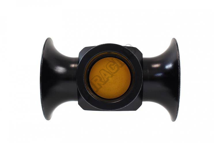 Odfuk turba v provedení s dual trychtýřem s hlasitým odfukem v leštěném provedení, výška 13cm, šířka i s trychtýřema 10 cm, vstup 32 mm. Tento Blow off ventil se montuje do sání mezi turbo a škrtící klapku.