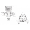 Sada obsahuje ucpávky, která umožňuje zvolit jeden ze 3 způsobů, jak bude ventil fungovat (buď se nepoužije uzávěr, nebo se částečně nebo úplně uzavře 1 vypouštěcí okruh).