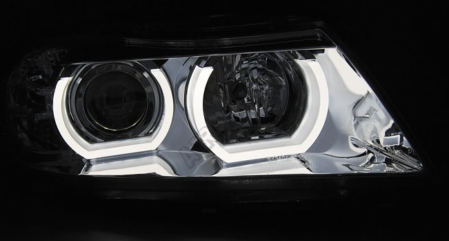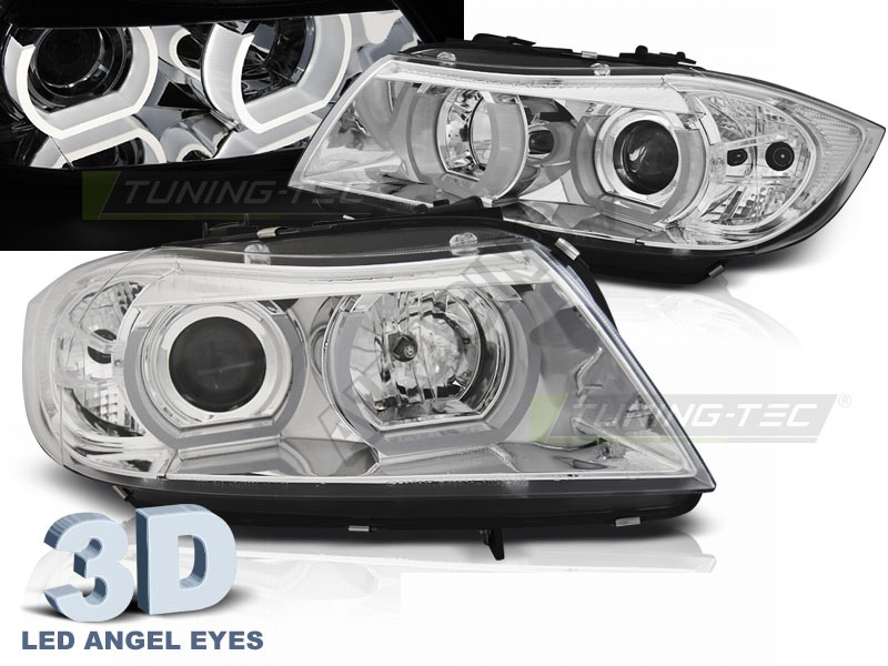 BMW E90/E91 03.2005-08.2008 přední čirá světla 3D U-Type chrome (LPBMI3) Světla mají homologaci pro