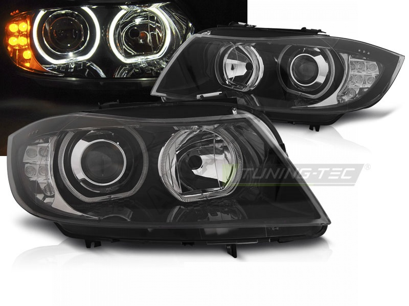 BMW E90 / E91 03.2005-2011 přední čirá světla Angel Eyes LED black indicator688.14 EUR