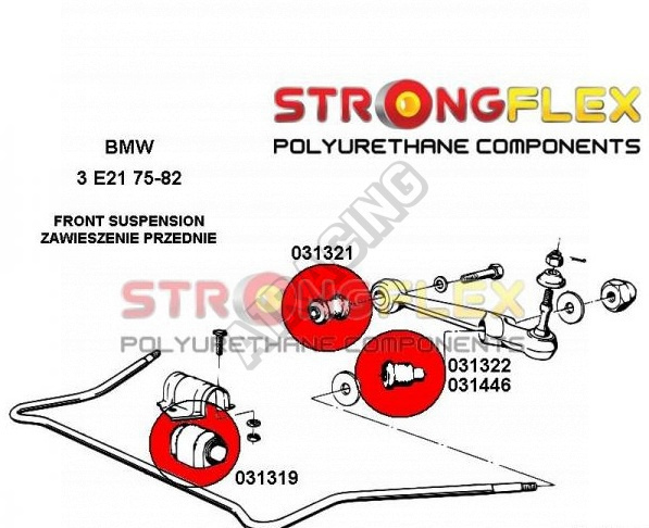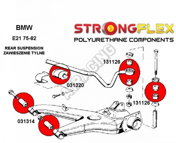 BMW řada 3 (E21) StrongFlex (tvrdost 80ShA) kompletní sestava silentbloků na celé auto obsahuje :