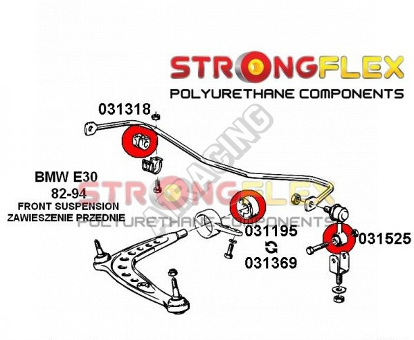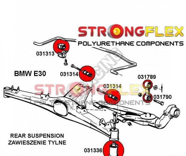 BMW řada 3 (E30) StrongFlex (tvrdost 80ShA) kompletní sestava silentbloků na celé auto obsahuje :
