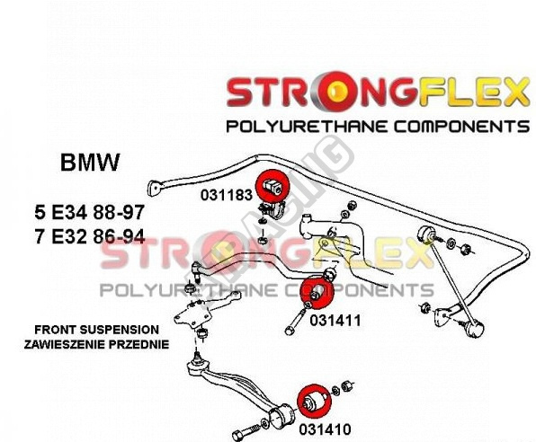 BMW řada 5 (E34) StrongFlex Sport sestava silentbloků jen pro přední nápravu 6 ks obsahuje: