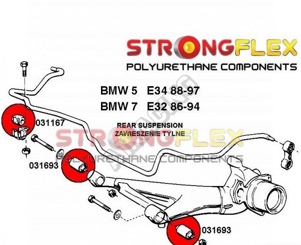 BMW řada 5 (E34) StrongFlex Sport sestava silentbloků jen pro zadní nápravu 8 ks obsahuje: