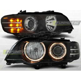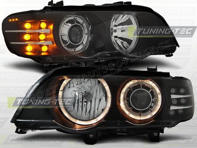 BMW X5 E53 09.1999-10.2003 přední čirá světla Angel Eyes Black Led Indicator Xenon