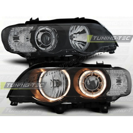 BMW X5 (E53) 1999-03 PŘEDNÍ ČÍRÁ SVĚTLA ANGEL EYES BLACK