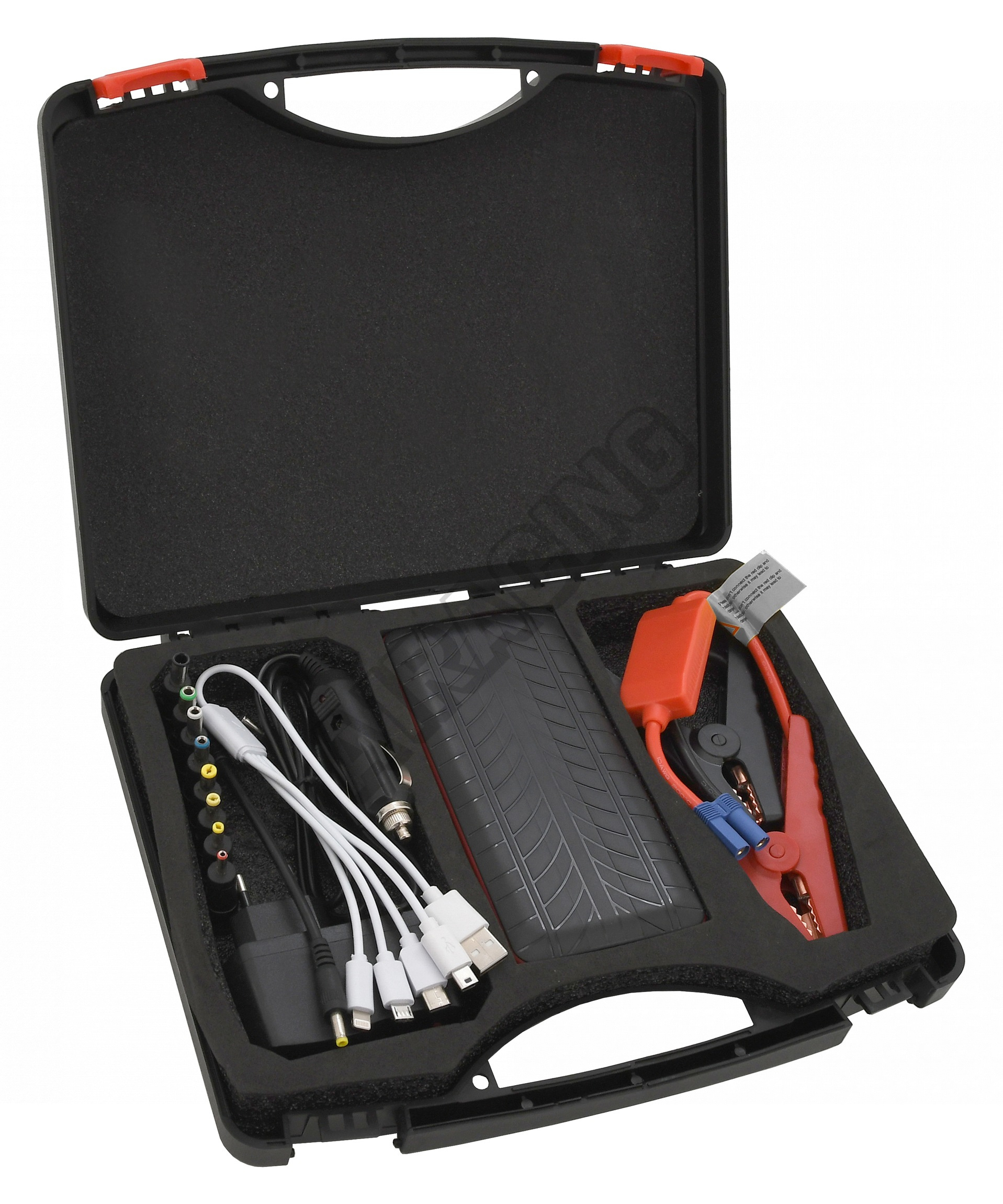 Díky funkci JUMP START umožňuje nastartovat vůz s částečně vybitou baterií. Pomocí klipsů se připojuje přímo na autobaterii startovaného vozidla.
