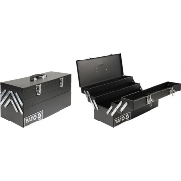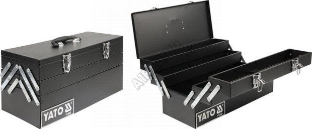 Kovový box na uložení nářadí, s madlem pro snadné přenášení.