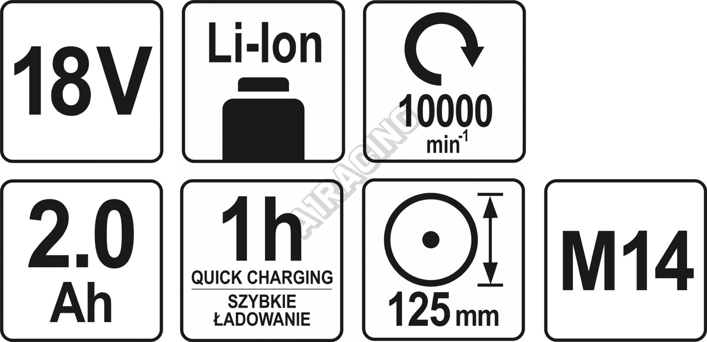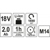Kompaktní AKU úhlová bruska značky Yato s výkonným motorem až s 10000 otáčkami za minutu. Bruska je