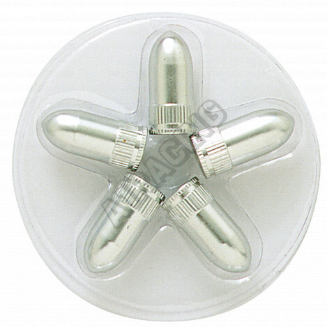 Čepičky na ventilky stříbtné ve tvaru náboje 4ks Alu leštěné provedení. Každá sada obsahuje 4 ks ve