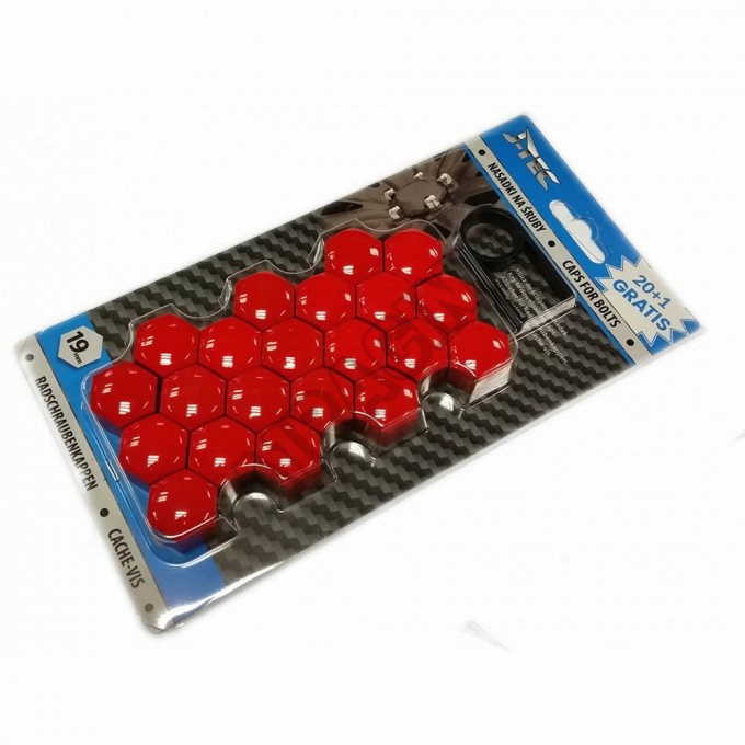 Červené kryty šroubů 21 ks (vnitřní průměr 17 mm) Slouží k nasazení na originální šrouby nebo matky