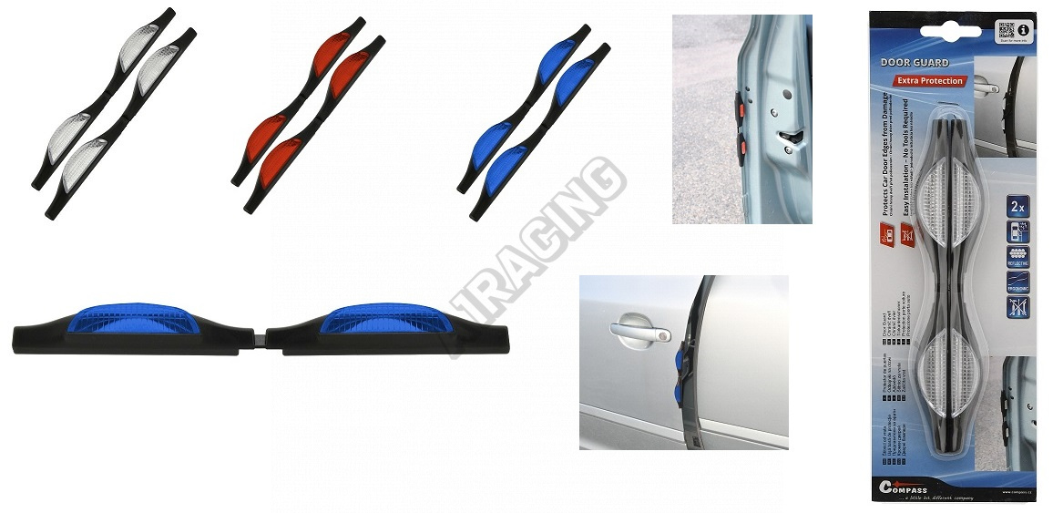 Chrániče dveří 2ks bílý, červený, modrý Sada dvou kusů chráničů z plastového materiálu s reflexními