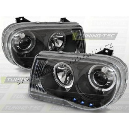 CHRYSLER 300C 2005-10 PŘEDNÍ ČÍRÁ SVĚTLA ANGEL EYES BLACK